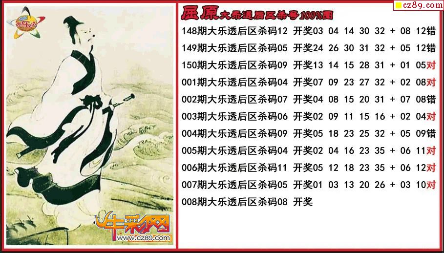 大乐透008期屈原后区杀号图